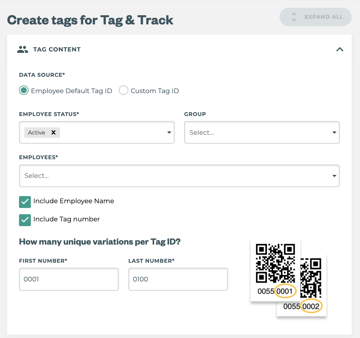 When generating QR codes for Tag and Track users will have the option to select their Data Source: