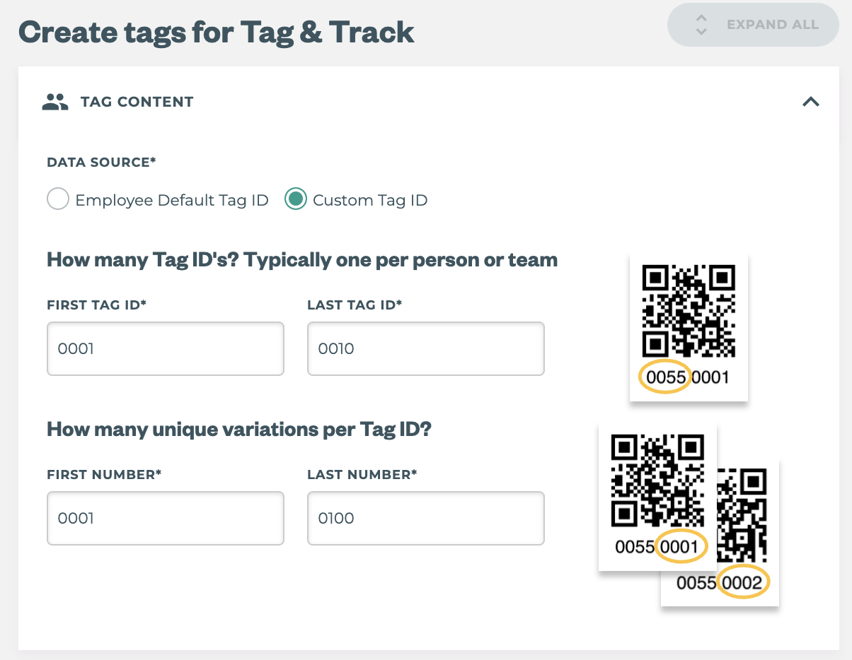 First & Last Tag Number: This is combined with the Tag ID to create a unique tag for unit tracking, which can only be SCANNED ONCE per Job.