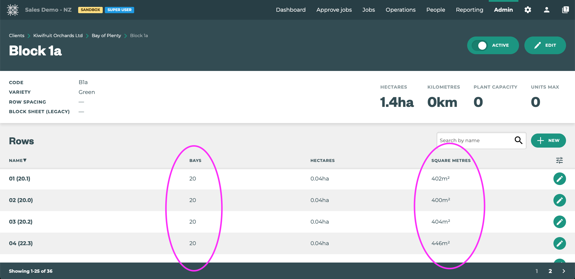 This feature works by calculating the relative percentage of units communicated and applies that same percentage to the units paid/tracked. For this to work you must first make sure that accurate row data is available for your blocks for each relevant unit type. This is done in Tātou Office App.