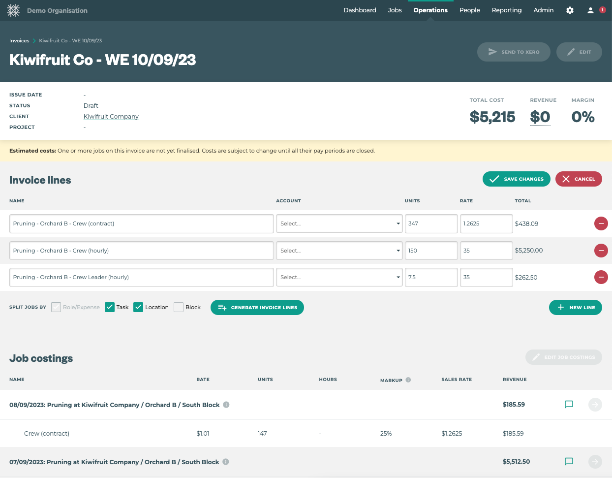 If you’re happy with the invoice lines you can send these to Xero which will create a draft invoice in your Xero account.