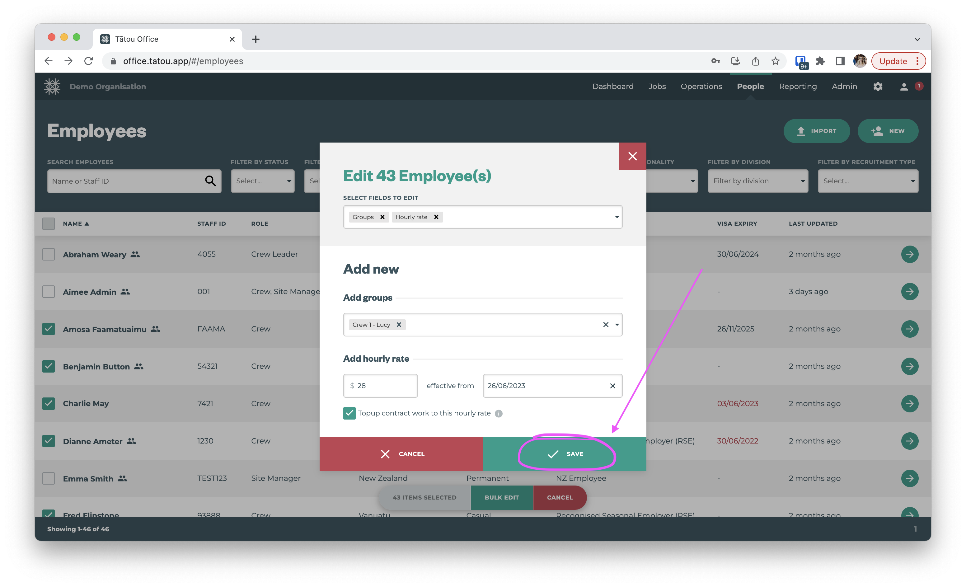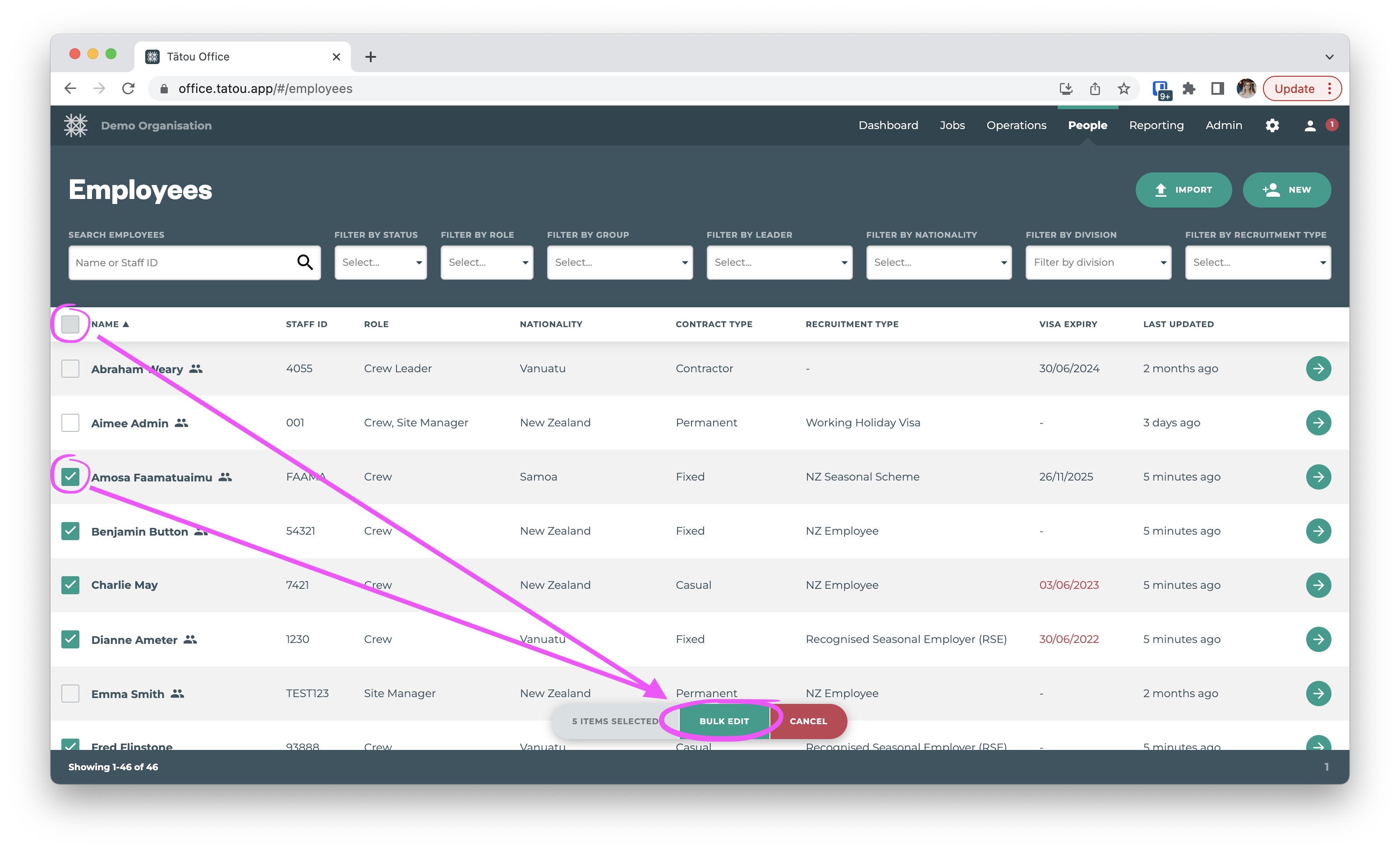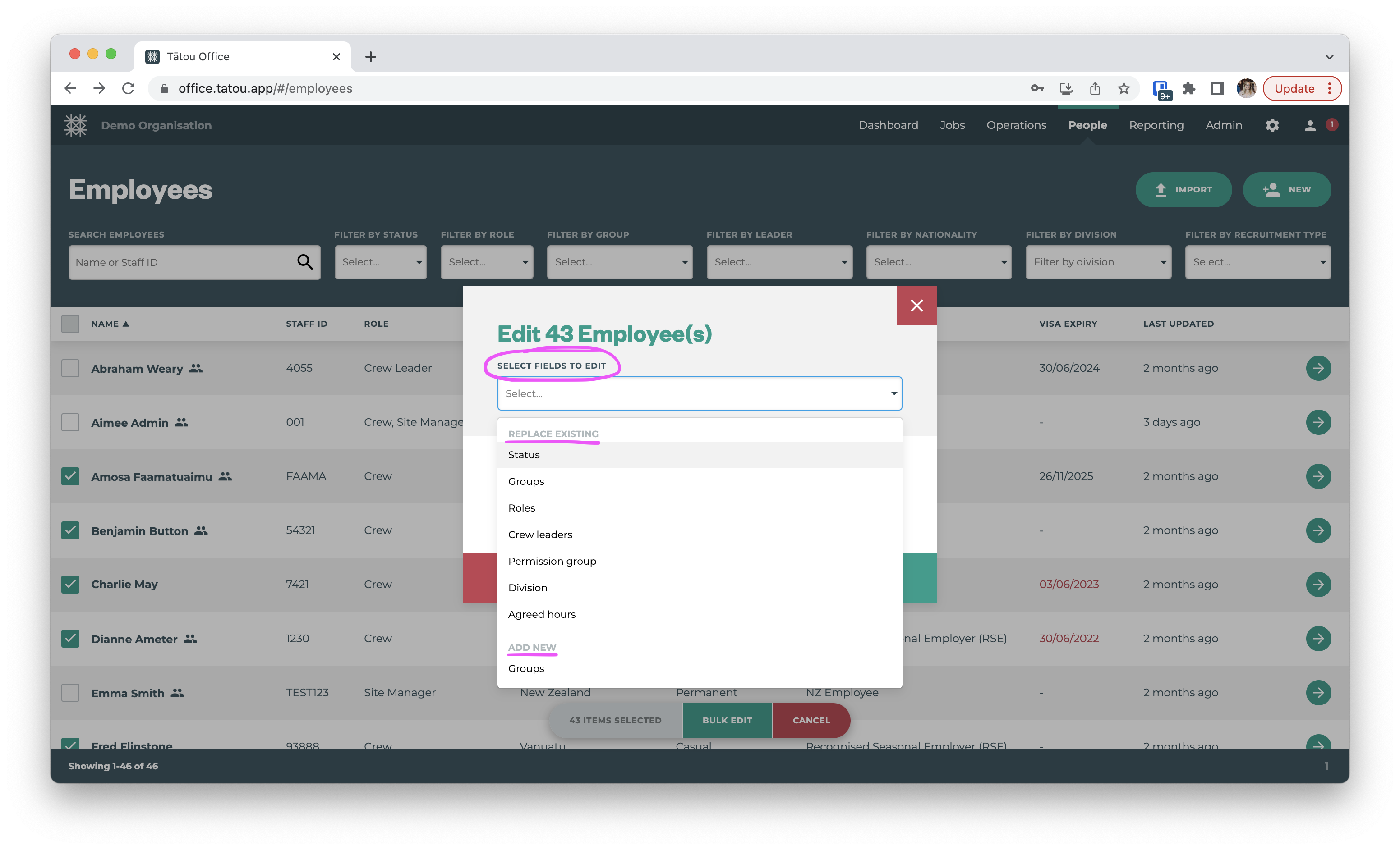 Bulk edit employees