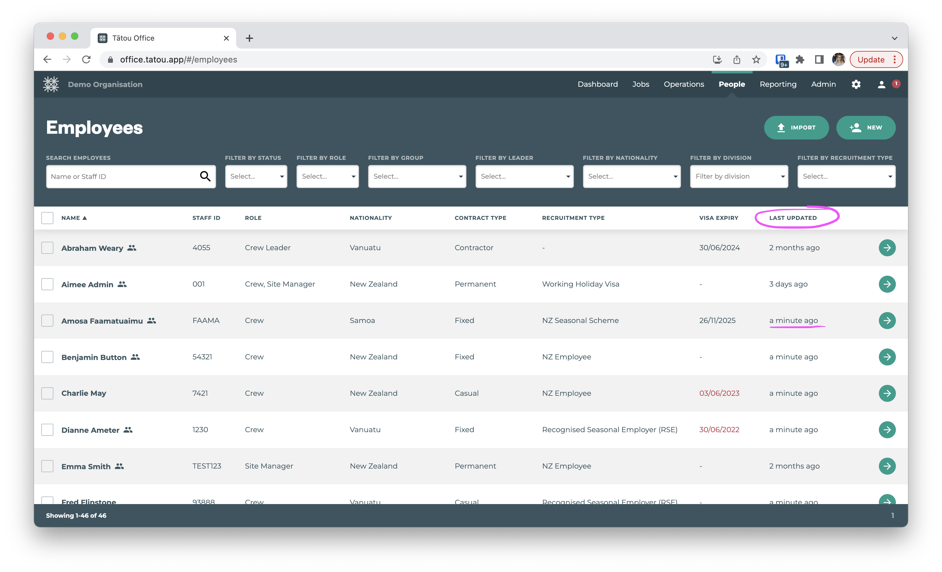 Login to Tātou Office and navigate to People > Employees