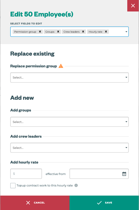 Changes made using Bulk Edit on 1 or more employees are for changes that are the same across for all employees selected. If you’re looking to make changes across many different employees that require different values changed check out our Employee Bulk Import Feature Pro-Tips article.