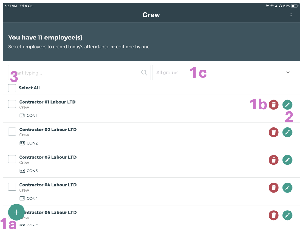 Groups are used to filter your employees in the Crew screen and the Attendance of a job. Groups are managed in the Tātou Office App.