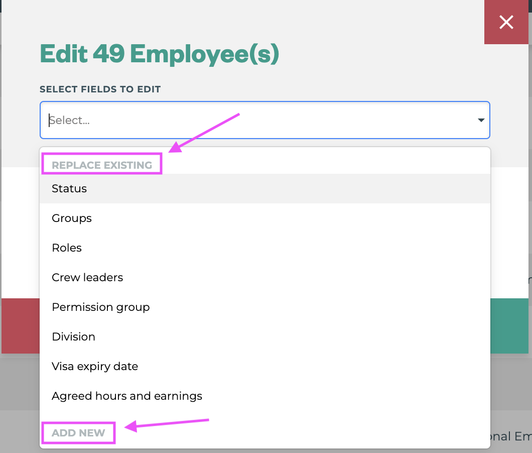 When Bulk Editing Employee Profile details it is possible to REPLACE or ADD NEW. Use caution when using this feature to make sure you are selecting the detail option under the correct heading.