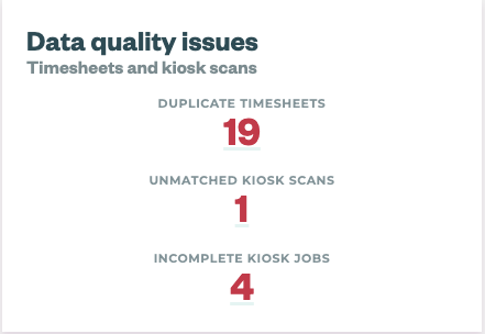 Incomplete Kiosk Scans: Clicking the number under this header will bring up the All Jobs Page filtered to the Job Flags “Kiosk Issues”