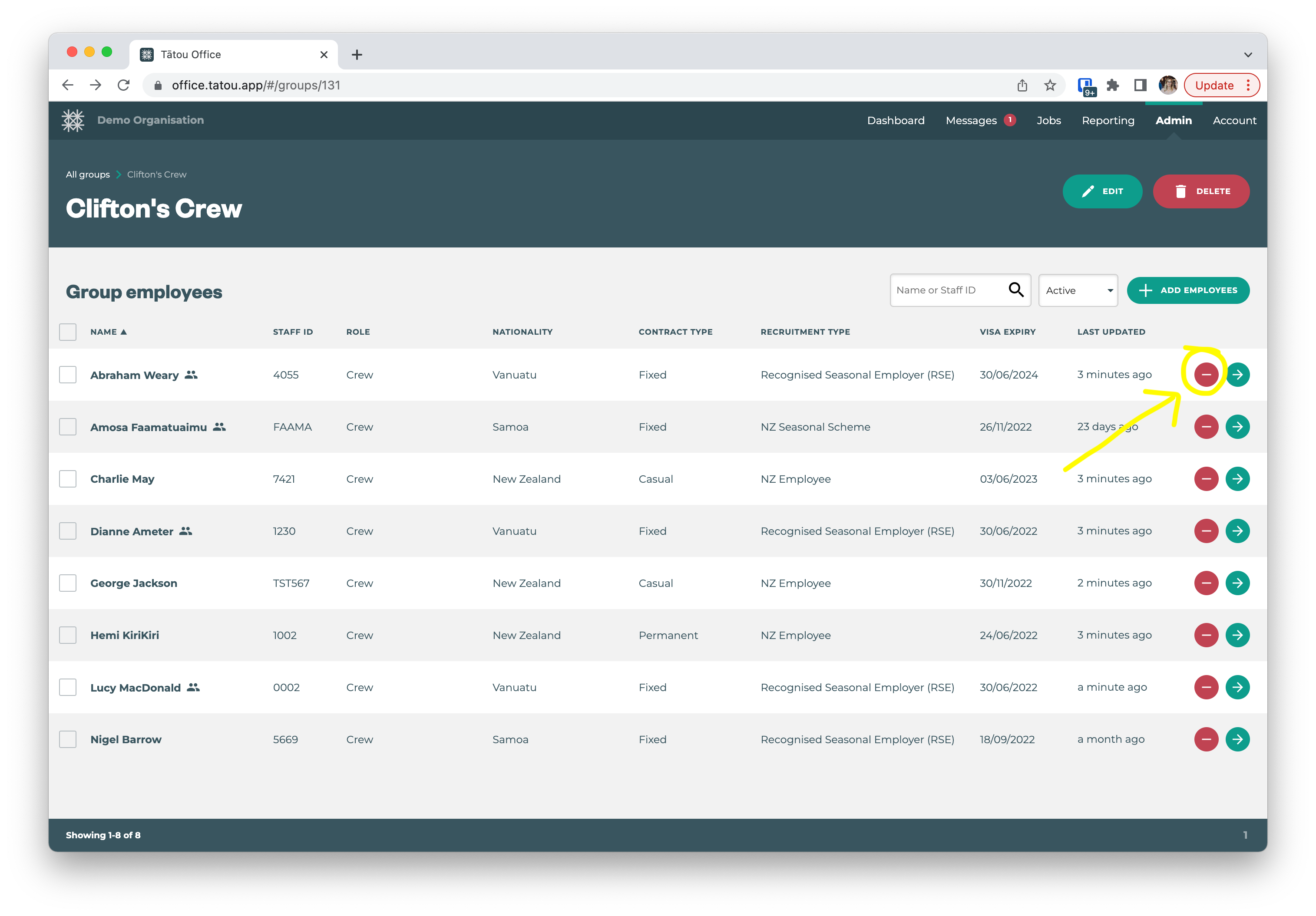button to remove the employee.Save your changes.