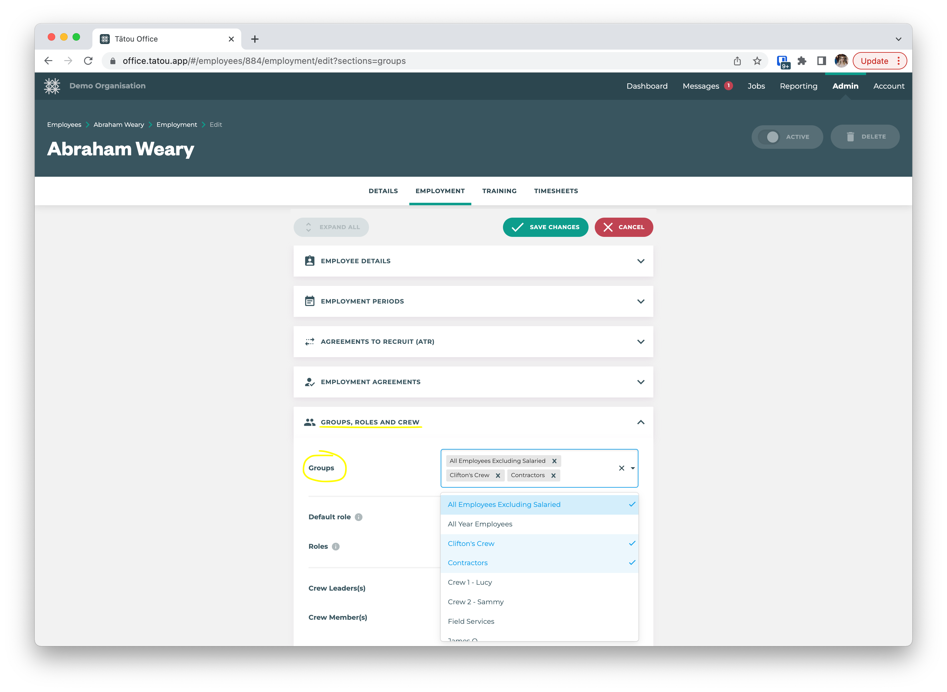Edit an Employee's Groups