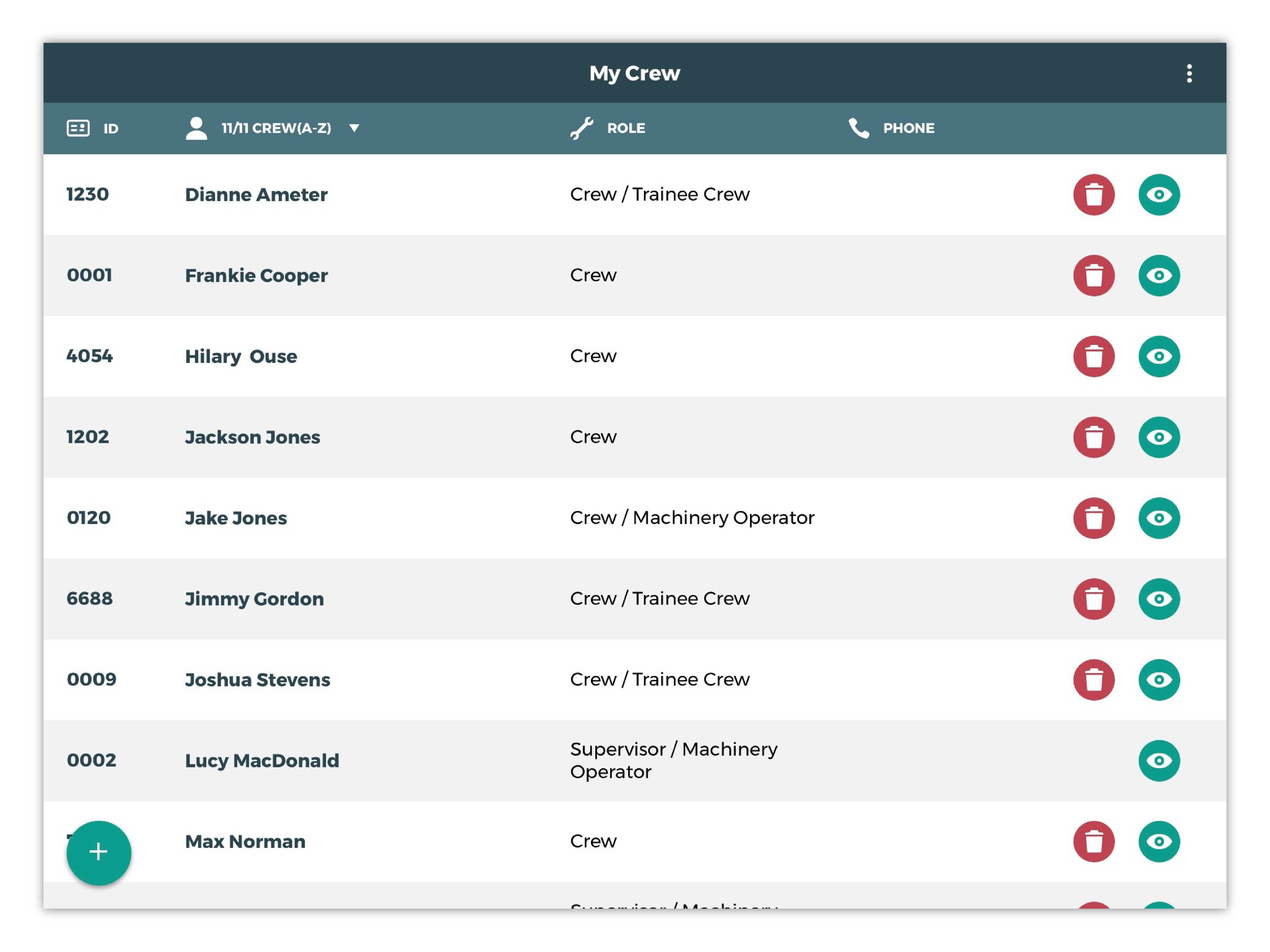 My CrewscreenRemove an employee from your crew by tapping the red trash icon in the same row.