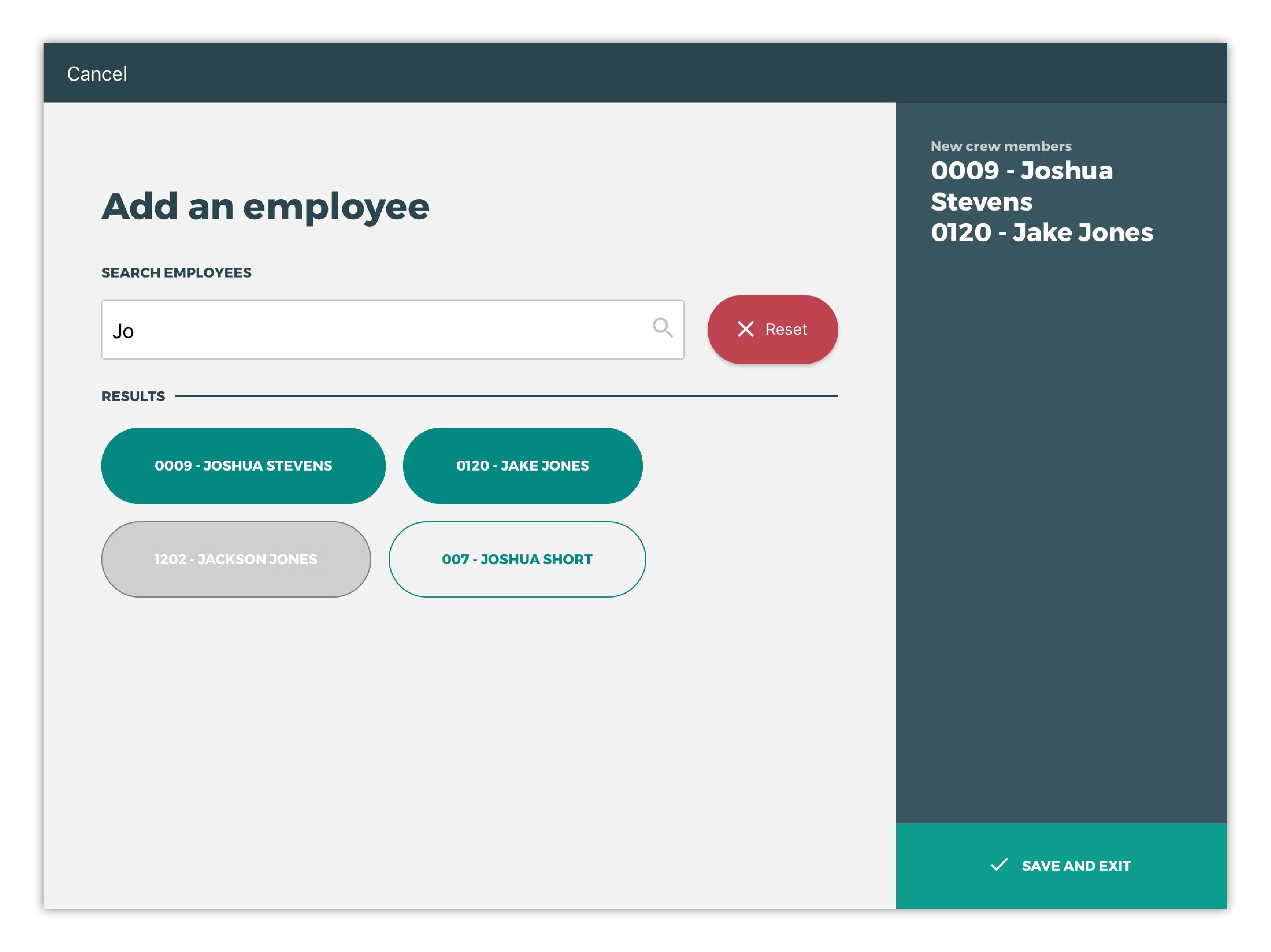 button in the bottom left of the My Crewscreen will open theAdd an employeescreen.Search for any active employees by name.