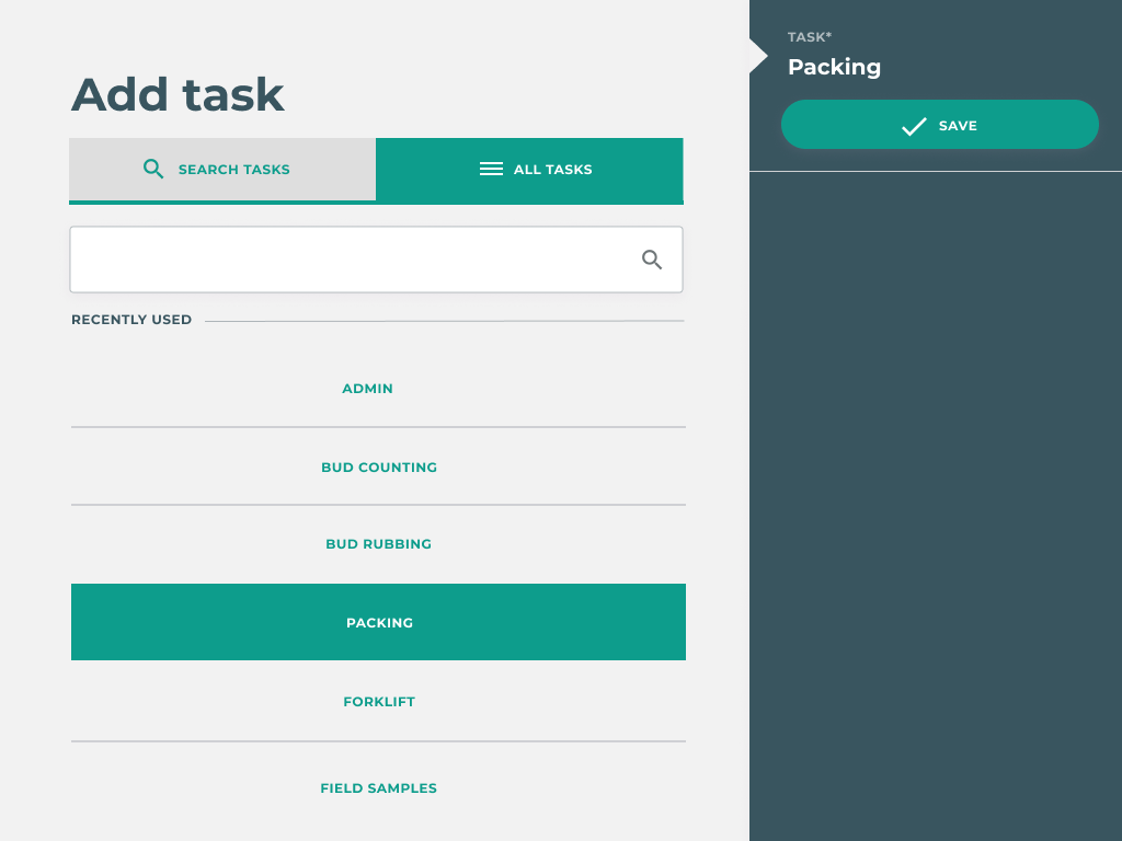 Allow employees to clock in and clock out of tasks via a self service kiosk.