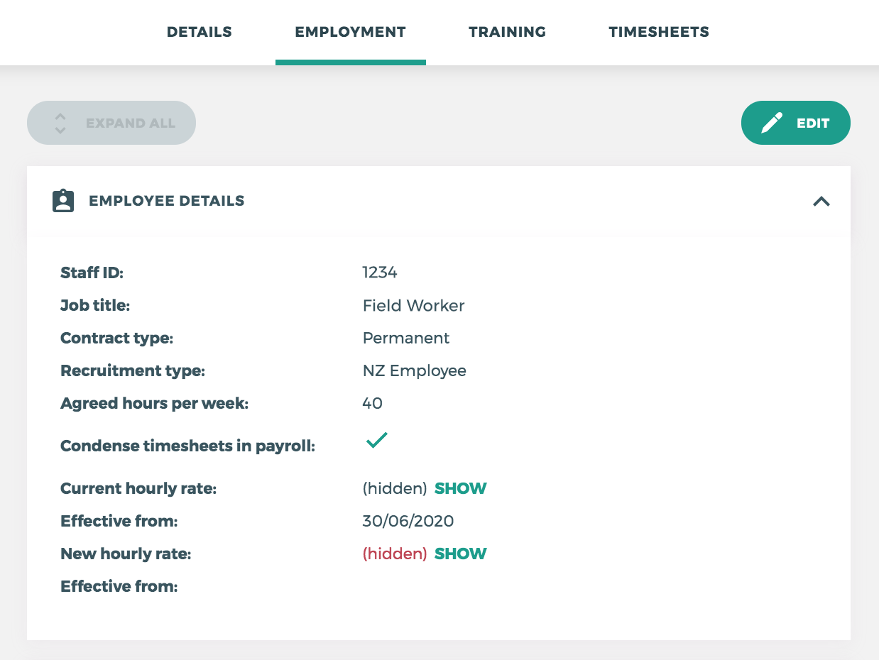 This feature is applied to each employee individually and requires their agreed hours per week to be entered and for condense timesheets in payroll to be ticked.