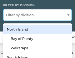Note: when applying a filter of Division (eg "North Island") then the results you see will be all records that are in ""North Island"" or one of its Subdivisions.